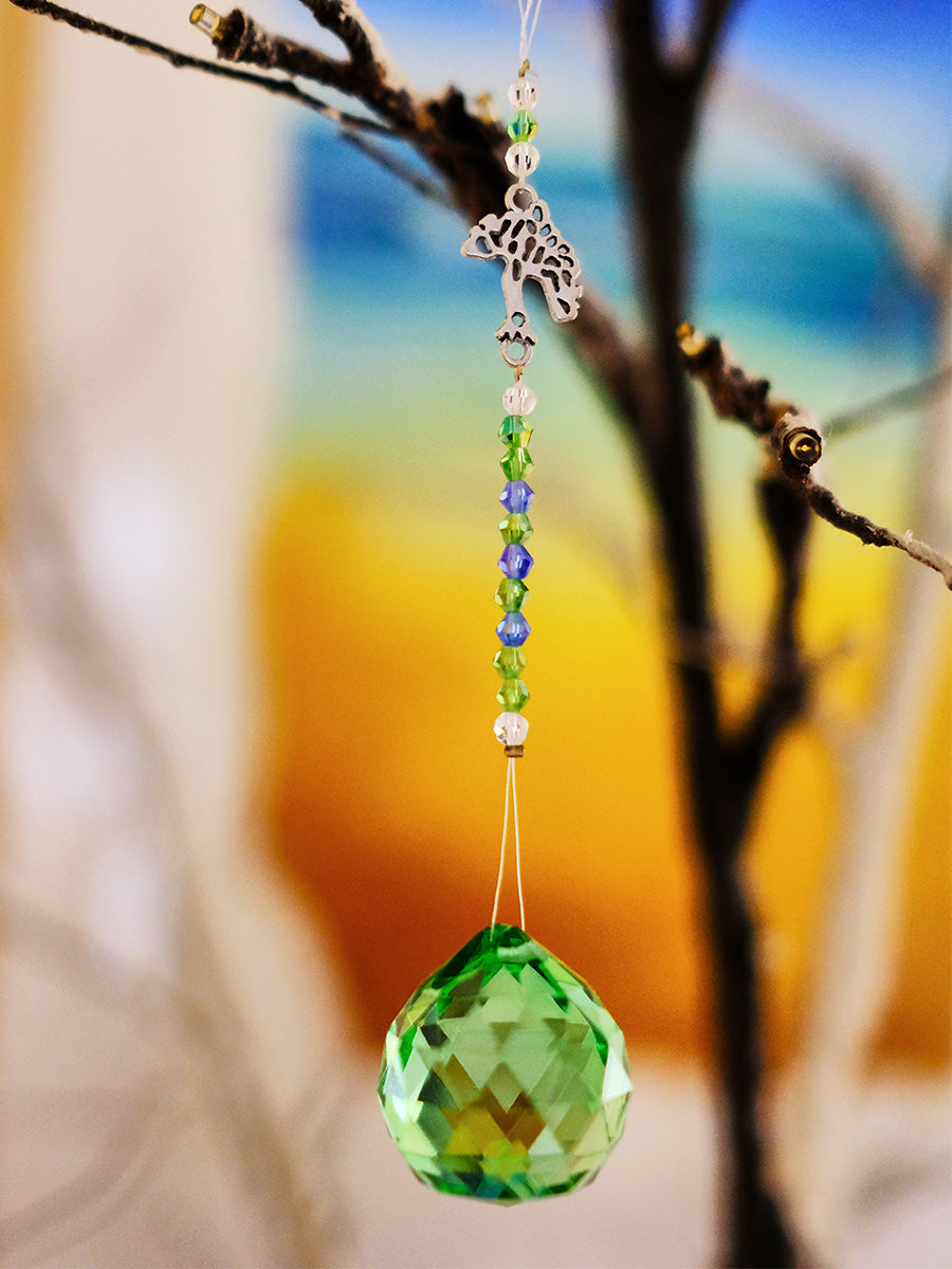 The Tree of Life is said to represent the Earth's connection to heaven, as well as fresh starts, positive energy and bright futures. What more could you want adorning your favourite room in the house? With the Tree of Life symbol hanging delicately between gorgeous green and blue crystals, this beautiful ornament is sure to bring style as well as happiness into your home.