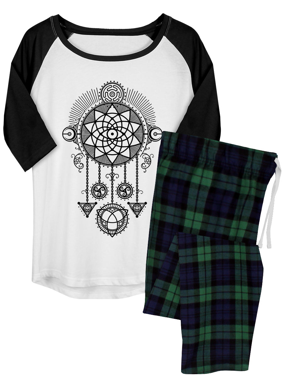 Ward away the bad dreams with this dream-catcher inspired design from the Unorthodox Collective! Featuring a symmetrical line-work based design, created to mimic the beauty of the classic Native American dream-catcher, this PJ set will help keep you warm and safe from any nightmares lurking in the cold, dark night.