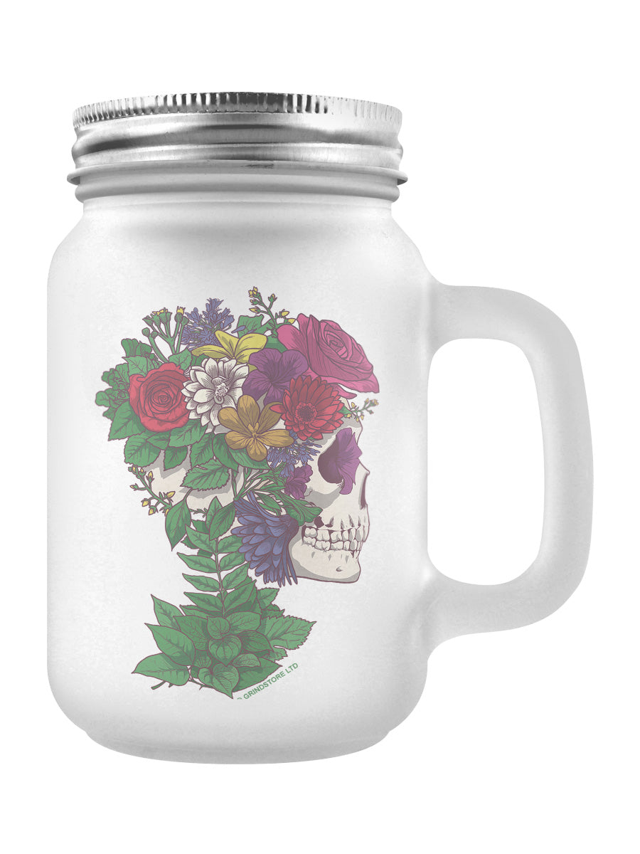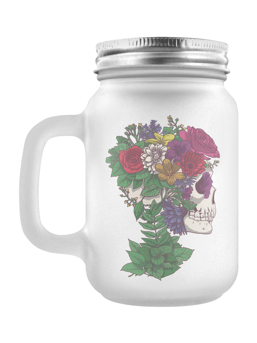 A wonderful mix of ethereal beauty and inevitable ending, this unique design plays with the contrast between the living and the dead, encasing a woman's skull in a colourful collection of flora. Treat yourself to this wondrous frosted mason jar from Unorthodox Collective, ideal for hot and cold drinks, and enjoy the one of a kind, arty image.