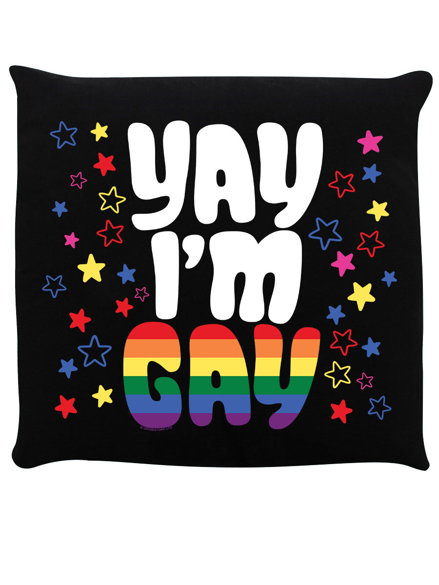 Let everyone know exactly who you are with this loud and bright cushion from Grindstore. Emblazoned with the word 'Yay I'm Gay' and featuring the pride flag, this is the perfect cushion for any member of the LGBTQ+ community.